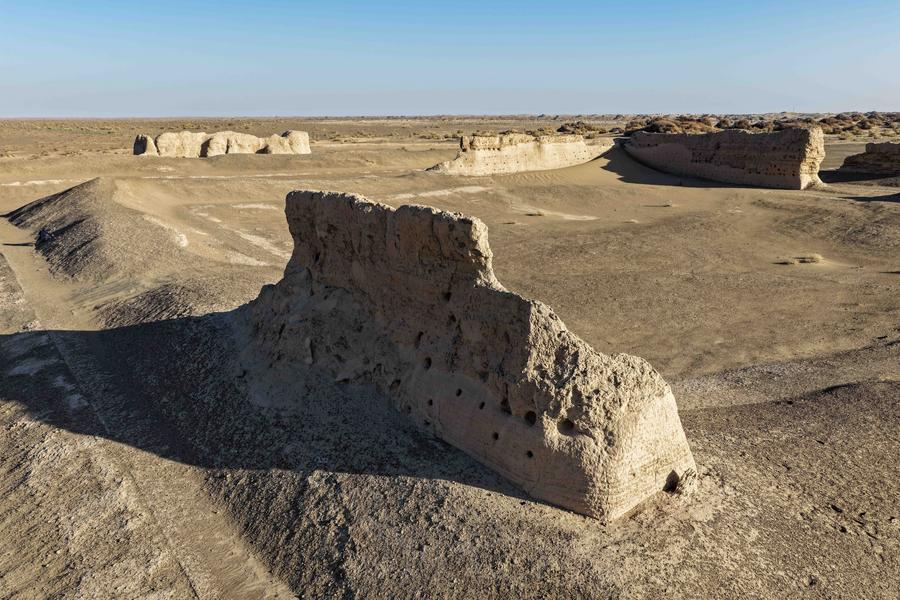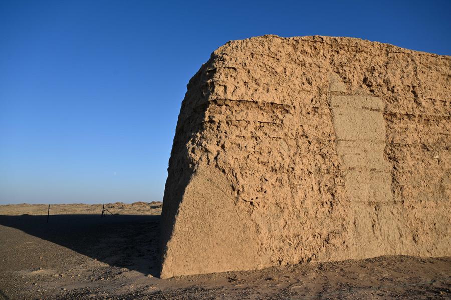 居延遺跡群の甲渠候官遺跡(漢代)。(11月3日撮影、フルンボイル=新華社記者/馬金瑞)