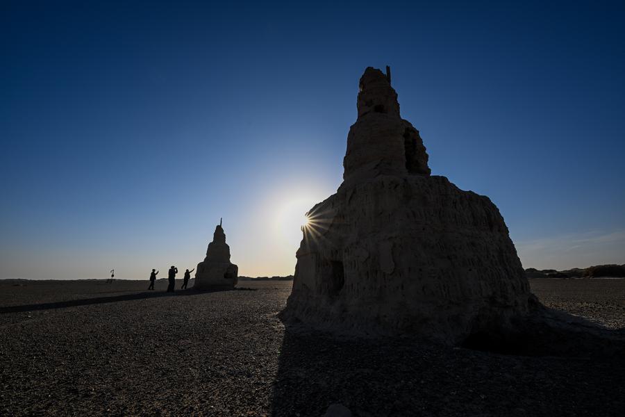 居延遺跡群の五塔遺跡(西夏)。(11月3日撮影、フルンボイル=新華社記者/馬金瑞)