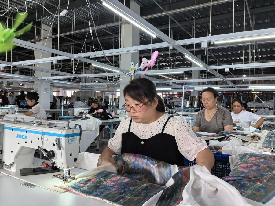 曹県にある漢服工場で縫製作業をするスタッフ。(済南=新華社配信)
