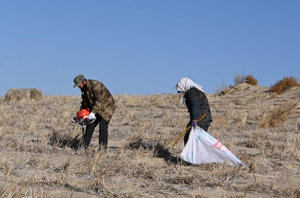 【新華社赤峰11月25日】中国内モンゴル自治区赤峰市オンニュド旗では初冬を迎え、科爾沁(ホルチン)砂地の風食を防ぎ砂を固定するため、住民たちが好天を利用し、ヤナギ属の植物、黄柳の植樹に取り組んでいる。