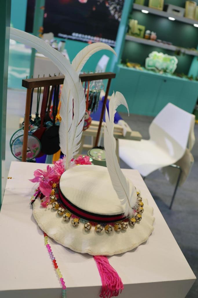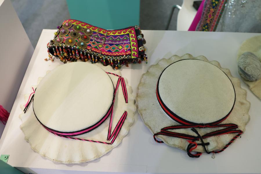 21日、四川省綿陽市平武県の白馬チベット族に伝わる帽子。(成都=新華社記者/藍建中)