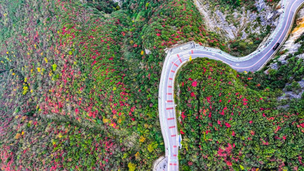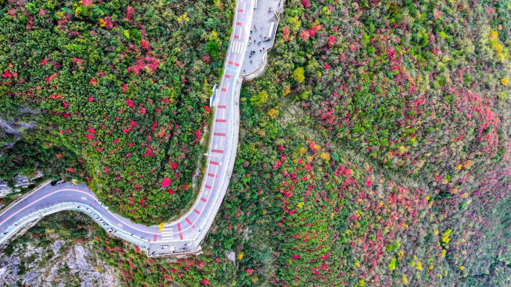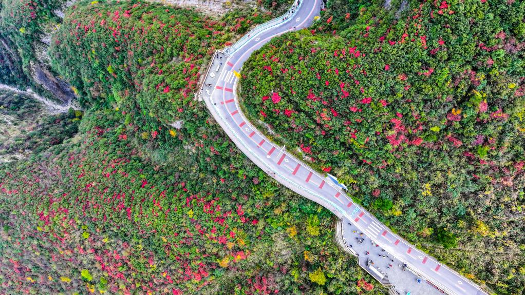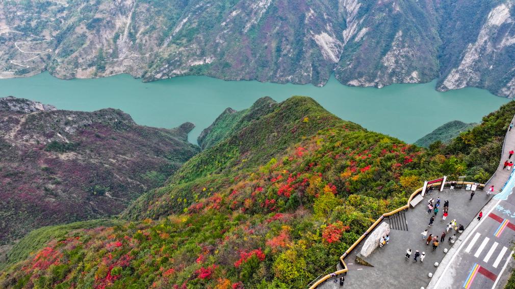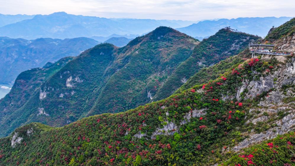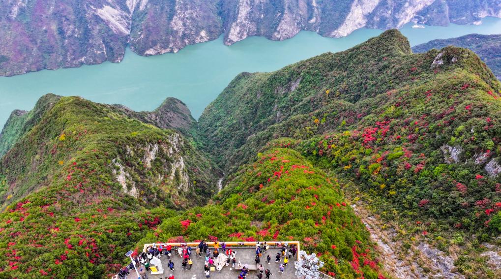 【新華社重慶11月27日】中国重慶市巫山(ふざん)県の長江巫峡一帯は、冬になると紅葉で赤く染まる。県内には約120万ムー(8万ヘクタール)にわたって200種類近くの紅葉樹があり、11月から翌年1月まで見頃が続く。