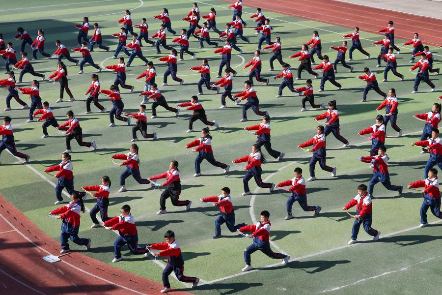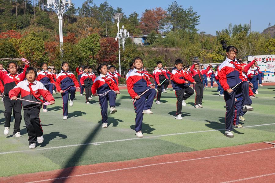 【新華社武夷山11月28日】中国福建省武夷山市の新豊小学校は26日、業間休みに縄跳び体操大会を開いた。同校は縄跳びを体育の授業に取り入れており、児童らのリズム感や体の柔軟性向上に役立っているという。