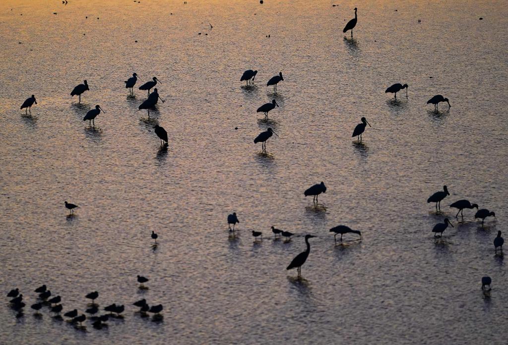 【新華社九江12月1日】中国江西省にある国内最大の淡水湖、鄱陽(はよう)湖で、コウノトリやヘラサギなどの希少な渡り鳥の越冬が始まっている。冬の柔らかな日差しの中、湿地で羽を休めるほか、浅瀬で餌をついばむ姿も見られ、生き生きとした光景が広がっている。