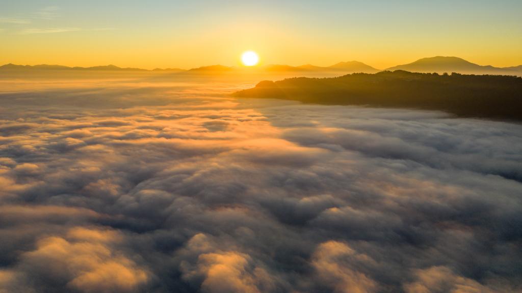 1日、景邁山に広がる雲海。(ドローンから、普洱=新華社記者/胡超)