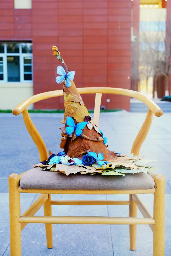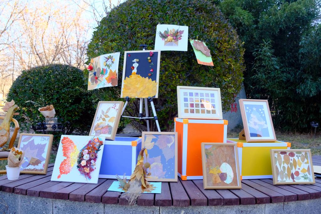 11月25日、落ち葉を使った作品制作の様子。(天津=新華社配信/邢岳坤)