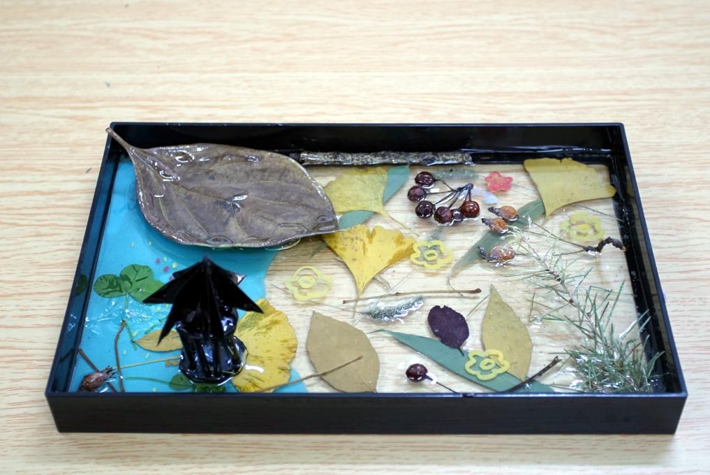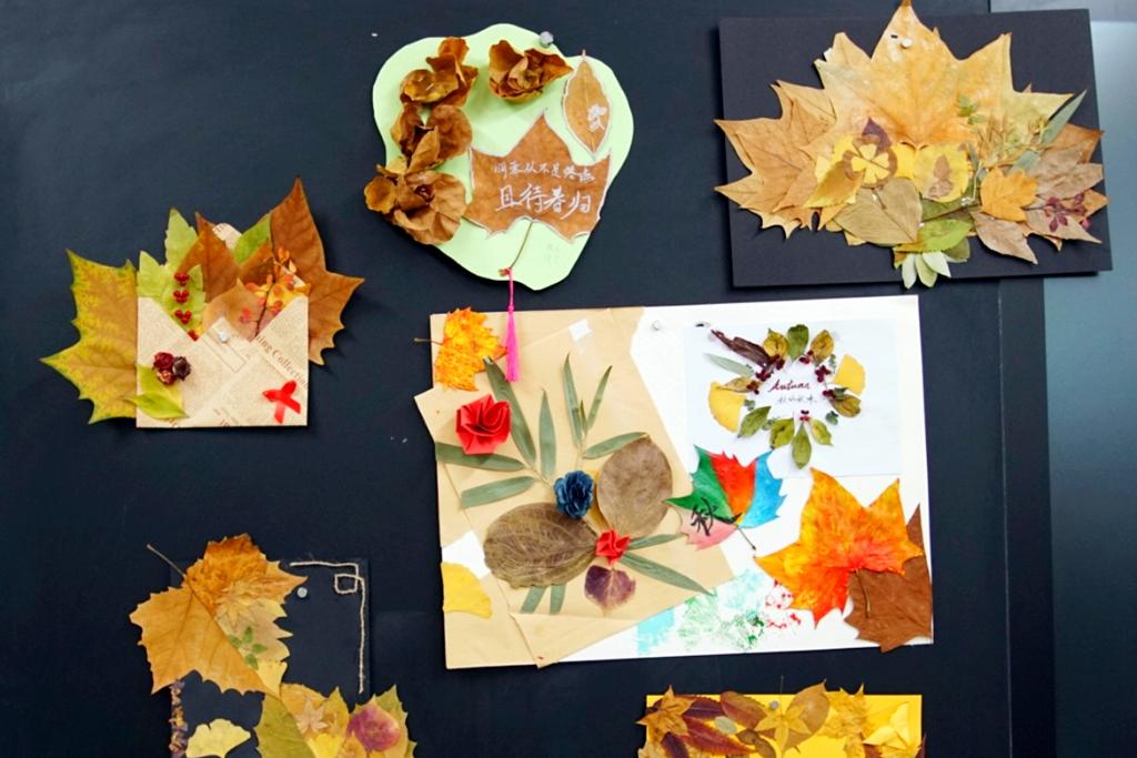 11月25日、落ち葉を使った作品に取り組む生徒ら。(天津=新華社配信/于長華)