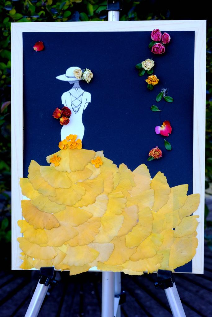 11月25日、落ち葉を使った作品制作の様子。(天津=新華社配信/張栄傑)