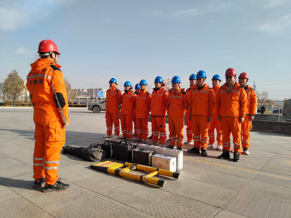 4日、アクチ県に向けて派遣される国家電網クズルス・キルギス自治州供電の支援要員。(アクチ=新華社配信)