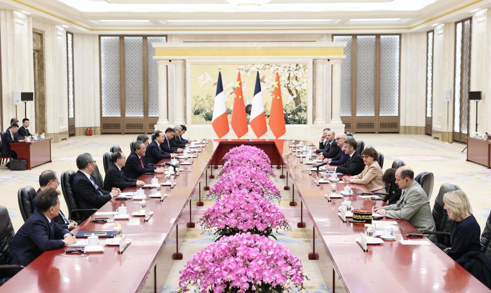 4日、李強総理とマクロン大統領の会談の様子。(北京=新華社記者/黄敬文)
