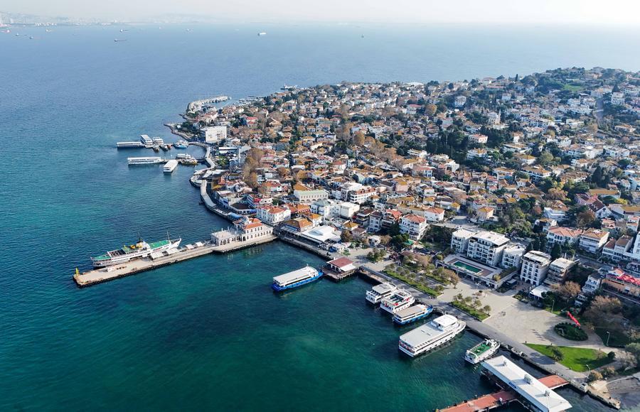 4日、トルコ・ブユカダ島の港。(ドローンから、イスタンブール=新華社記者/劉磊)