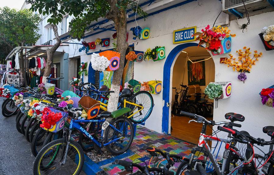 4日、トルコ・ブユカダ島にある自転車レンタル店。(イスタンブール=新華社記者/劉磊)