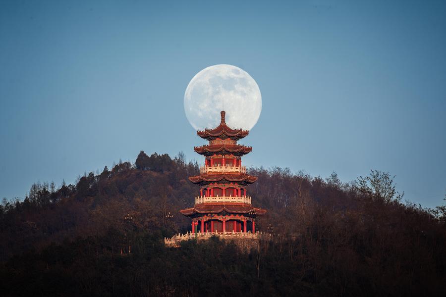 【新華社天津12月6日】今年2番目に大きな月「スーパームーン」が5日午前7時14分(日本時間同8時14分)に、満月を迎えた。満月の時刻が早朝に当たるため、観賞に最も適した時刻は4日夜となった。(記者/周潤健)