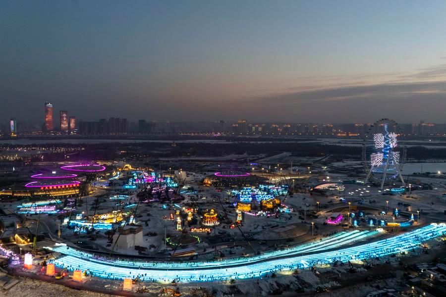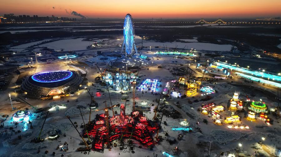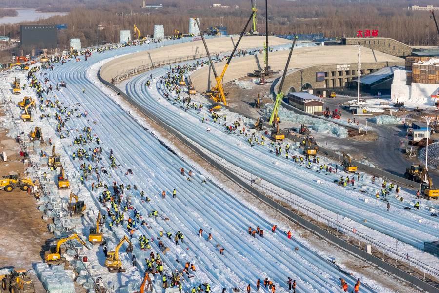 【新華社ハルビン12月7日】中国黒竜江省ハルビン市でこのほど、1万人を超える専門作業員と建設機械約千台が投入され、氷雪テーマパーク「ハルビン氷雪大世界」の今シーズンの営業に向けた氷の設営作業が始まった。幻想的でおとぎ話のような雪と氷の世界がまもなく開園し、来場者を迎える。