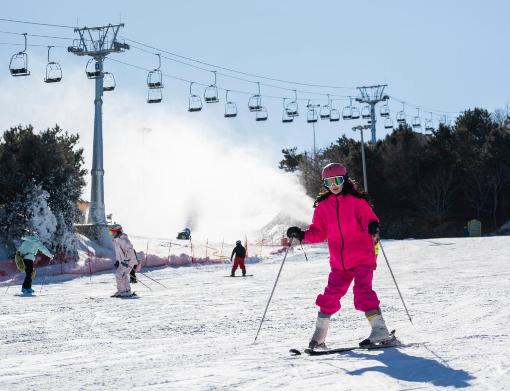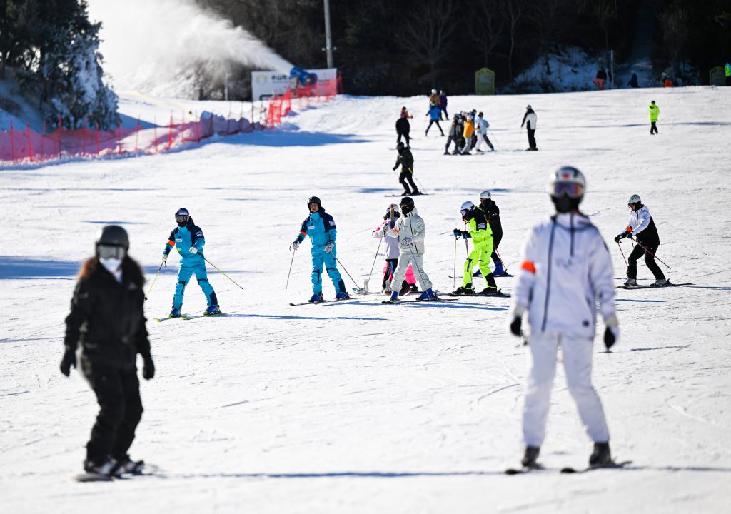 2日、天津市の薊洲国際スキー場でスキーを楽しむ観光客。(天津=新華社記者/趙子碩)