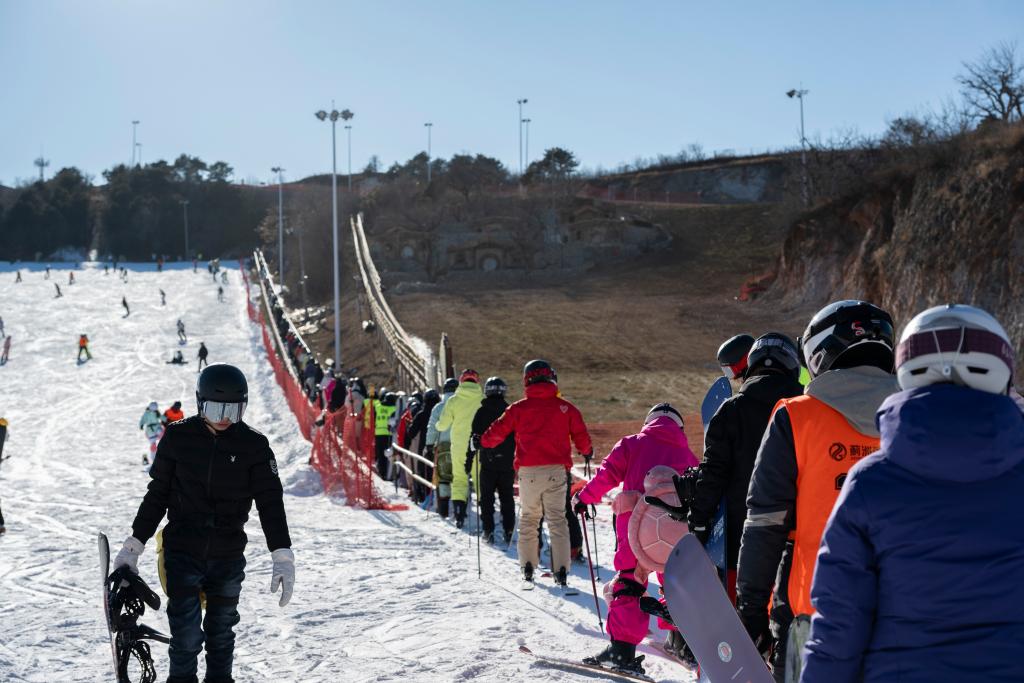 2日、天津市の薊洲国際スキー場でスキーやスノーボードを楽しむ観光客。(天津=新華社記者/趙子碩)
