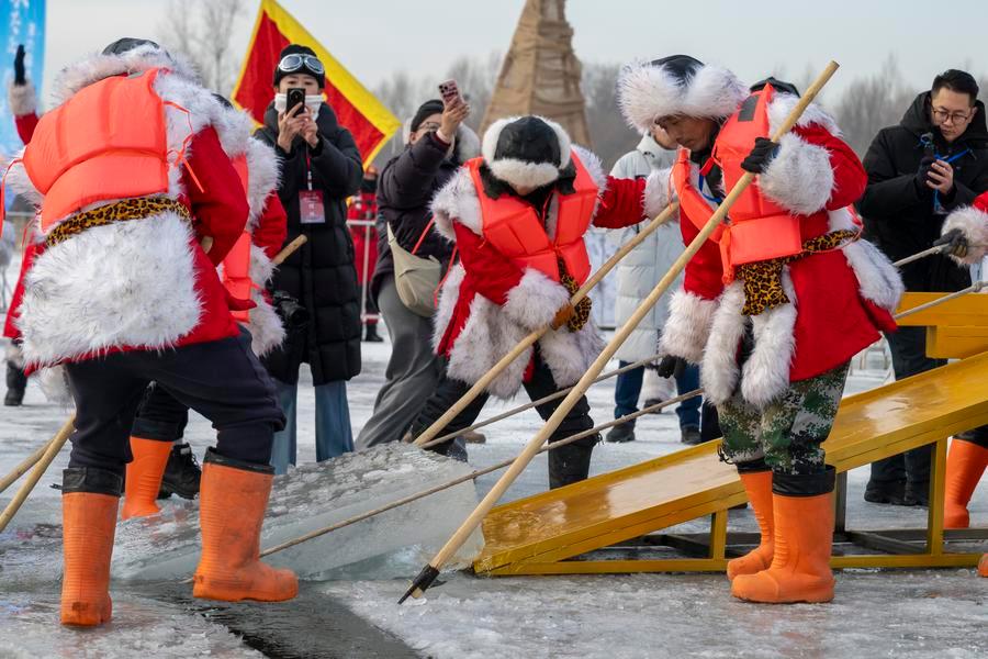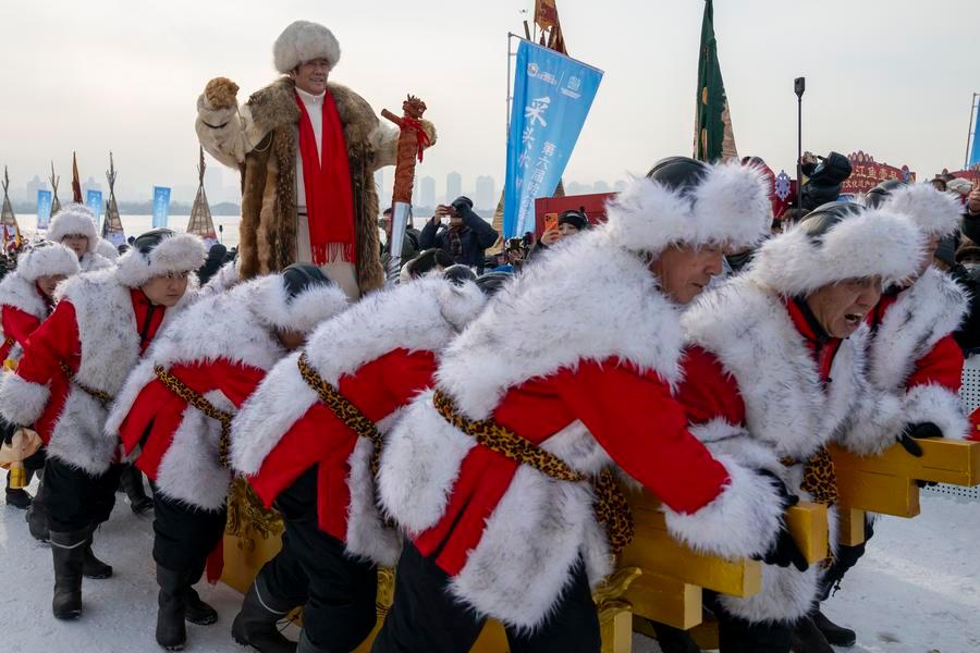 【新華社ハルビン12月8日】中国黒竜江省ハルビン市を流れる松花江で7日、第6回ハルビン採氷祭りが開幕した。盛大な採氷式のほか、民俗体験イベントも行われ、多くの市民や観光客が参加した。