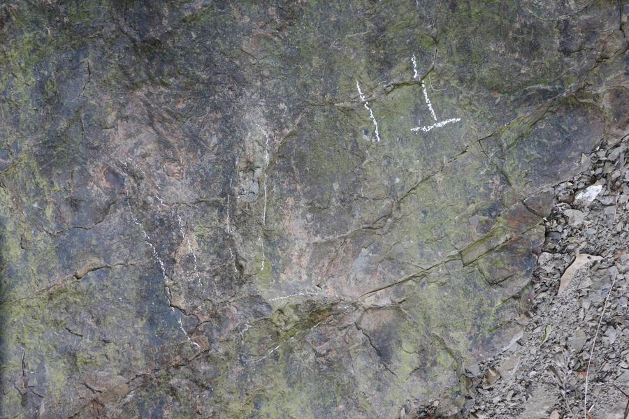 都江堰市の岩壁で見つかったキロテリウムの足跡。(成都=新華社配信)
