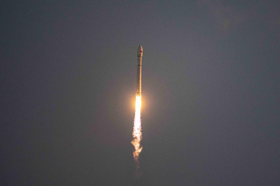 12日、海南商業宇宙発射場から打ち上げられた運搬ロケット「長征12号」。(文昌=新華社記者/蒲暁旭)