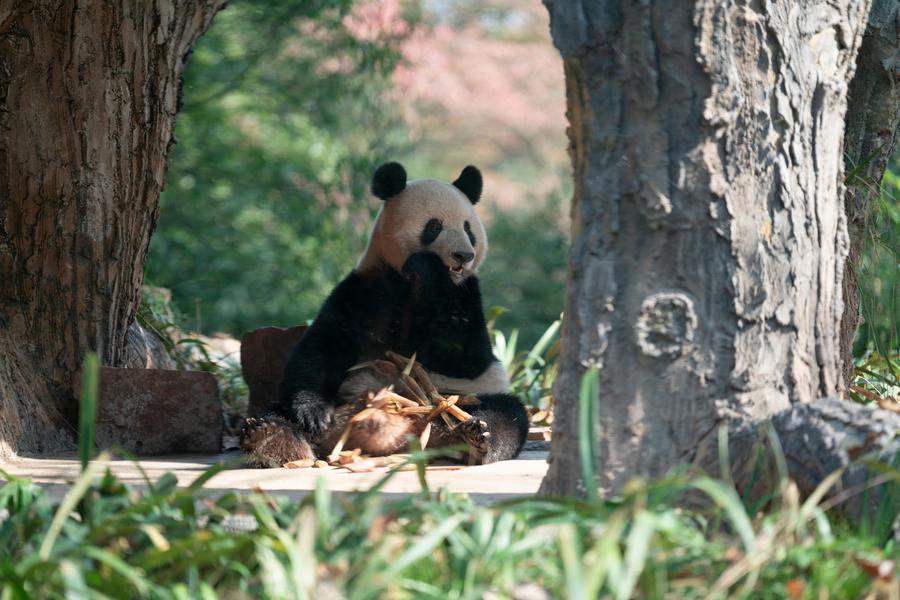 【新華社成都12月12日】中国四川省雅安市にある中国ジャイアントパンダ保護研究センター雅安碧峰峡基地でこのほど、日本生まれのパンダ、シャンシャン(香香)がタケノコを食べる様子が撮影された。