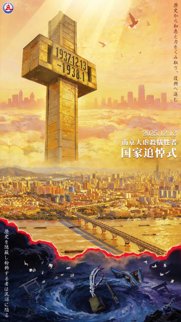 【新華社北京12月13日】中国は13日、12回目の南京大虐殺犠牲者国家公祭日(追悼日)を迎えた。江蘇省南京市の侵華日軍南京大屠殺遇難同胞紀念館では、南京占領中の中国侵略日本軍によって虐殺された犠牲者の国家追悼式が行われた。歴史の真実が葬り去られることは決してない。日本軍国主義の復活を断じて許してはならない。