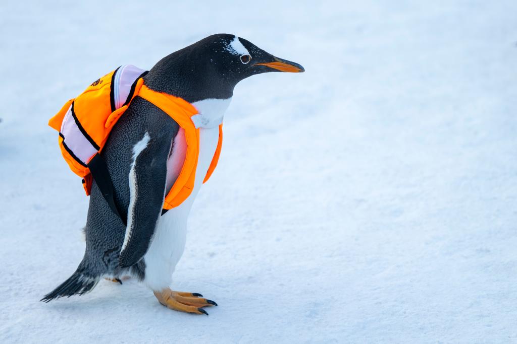 「逃学企鵝(サボりペンギン)・世紀の大型交代式」と題されたイベントで、小さなリュックを背負ったペンギンも登場。多くの来園客を楽しませた。
