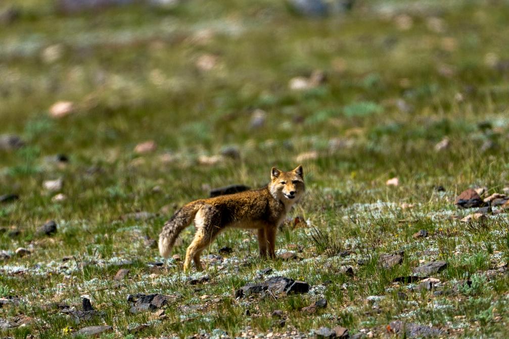 チャンタン国家級自然保護区に生息するチベットスナギツネ。(7月16日撮影、ラサ=新華社記者/姜帆)