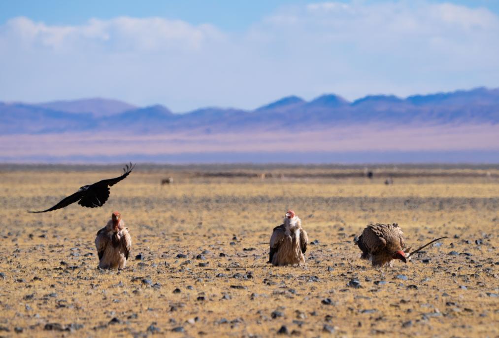 4日、チャンタン国家級自然保護区に生息するヒマラヤハゲワシ。(ラサ=新華社記者/郭昱)