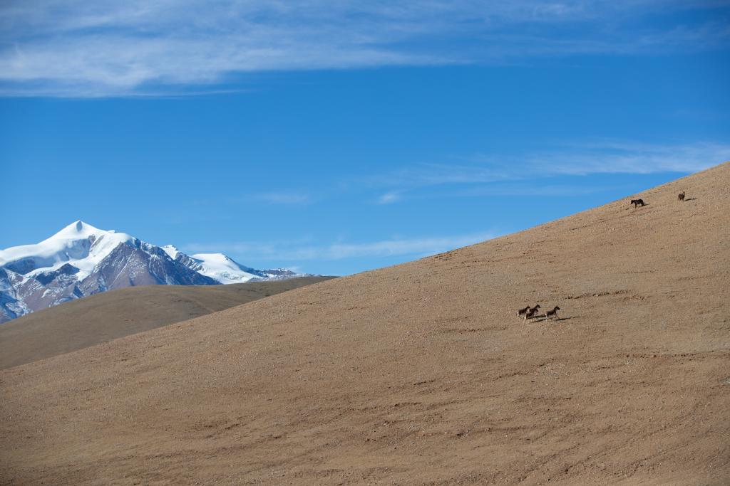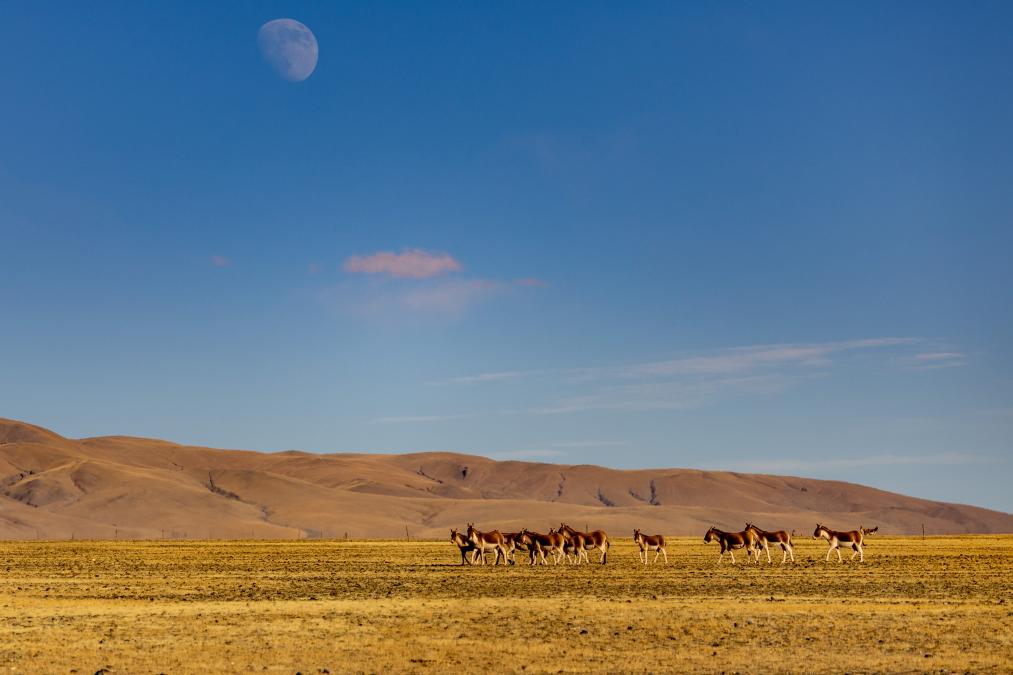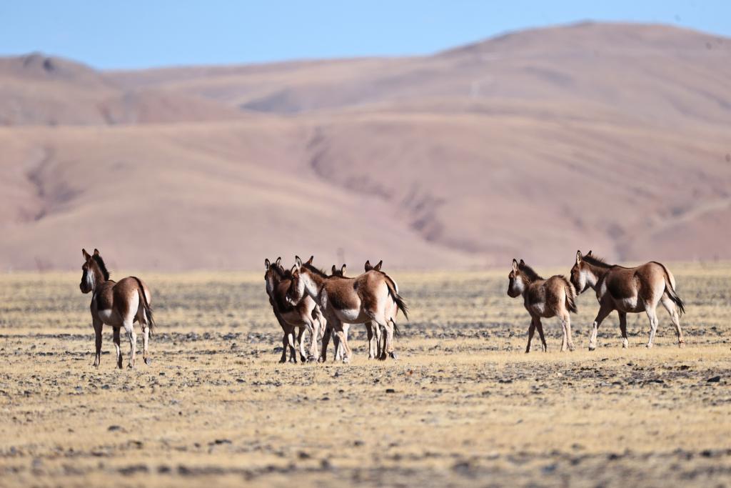 3日、チャンタン国家級自然保護区に生息するチベットノロバ。(ラサ=新華社記者/郭昱)