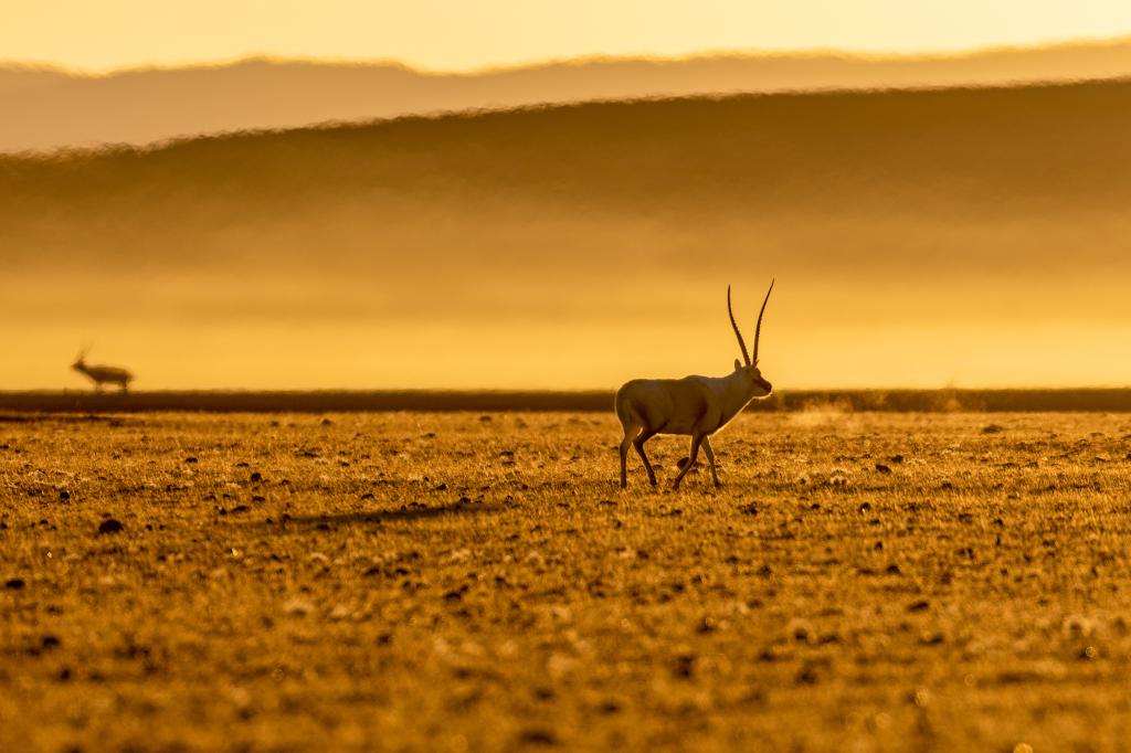 2日、チャンタン国家級自然保護区に生息するチベットガゼル。(ラサ=新華社記者/郭昱)