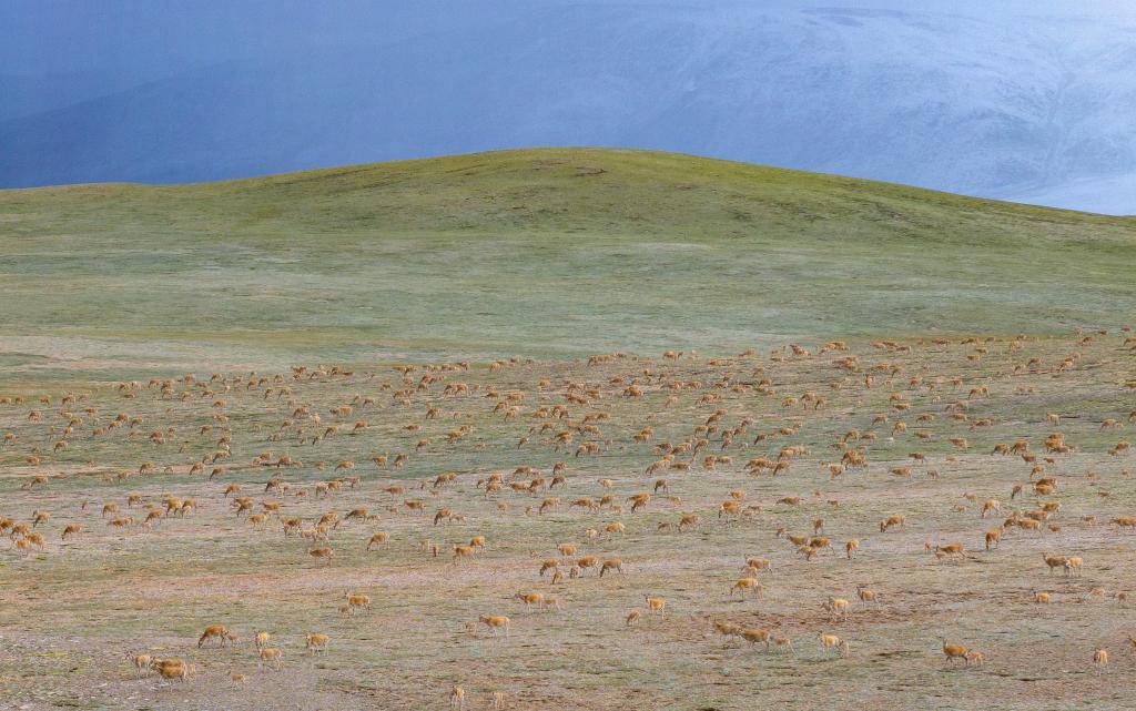 4日、チャンタン国家級自然保護区に生息するチルー。(ラサ=新華社記者/姜帆)