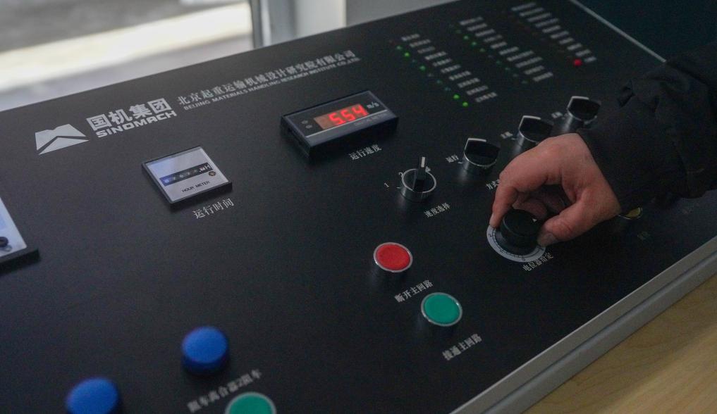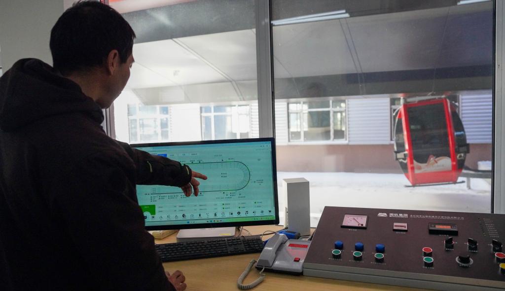 2日、北大湖スキーリゾート(吉林省吉林市)のロープウエー駅で、スマート化設備を使ってロープウエーを運行する職員。(吉林=新華社記者/顔麟蘊)