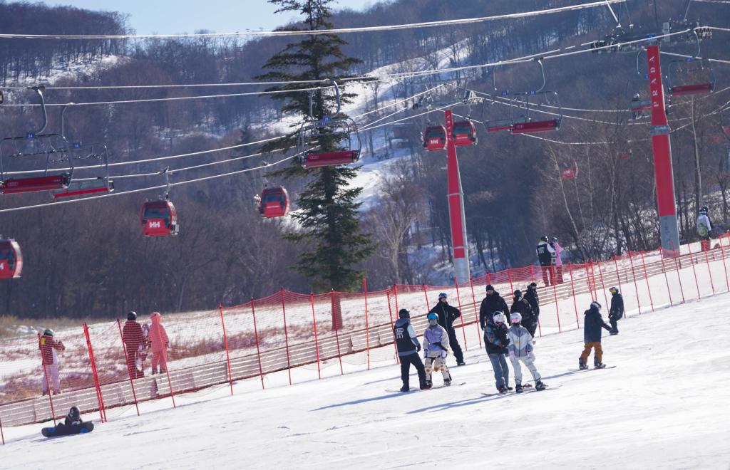 2日、北大湖スキーリゾート(吉林省吉林市)で、スキーを楽しむ人たち。(吉林=新華社記者/顔麟蘊)