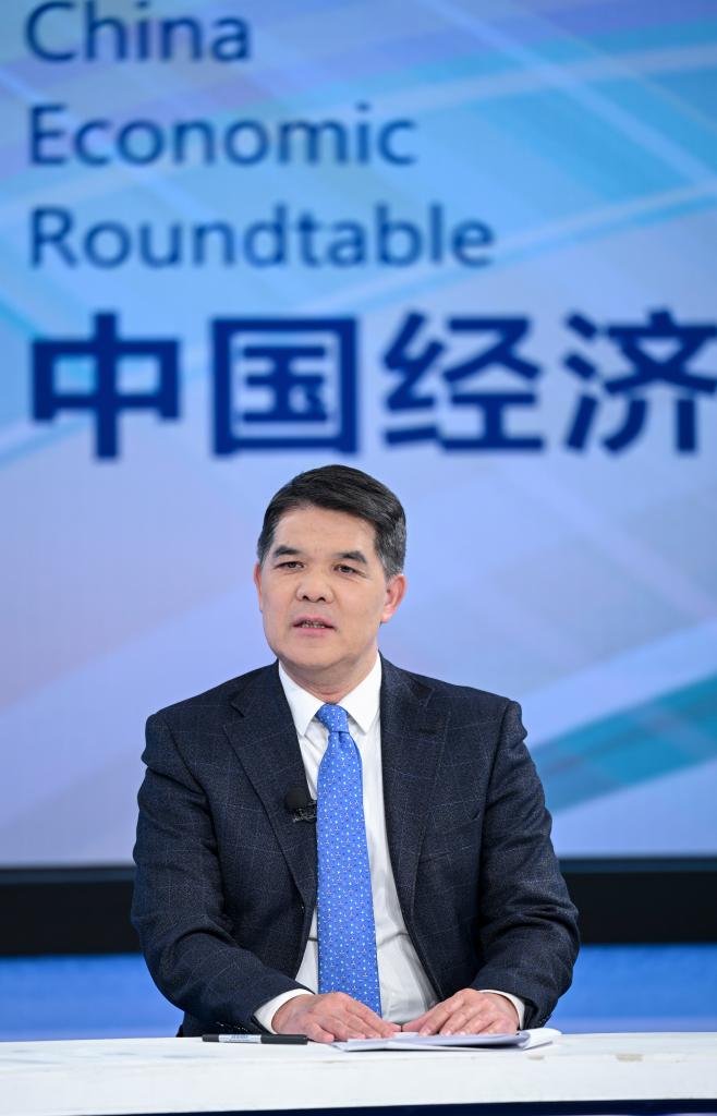 中国経済円卓会議で意見を交わす出席者。(北京=新華社記者/陳曄華)