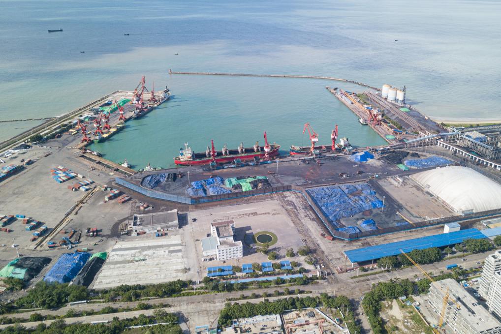 海南省東方市の八所港通関地。(11月7日、ドローンから、海口=新華社記者/蒲暁旭)