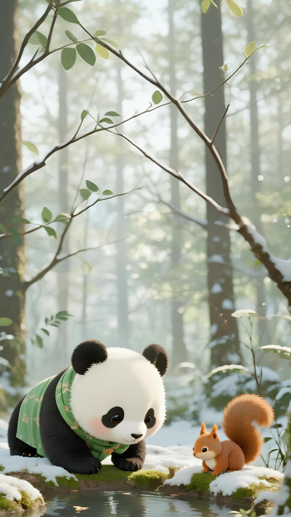 泉水の音に耳を傾ける様子を表した壁紙。(北京=新華社配信)