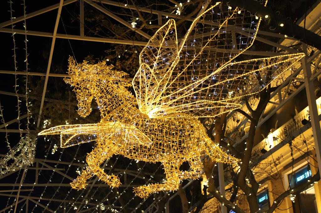 15日、中央大街のイルミネーション。(ハルビン=新華社記者/孫暁宇)