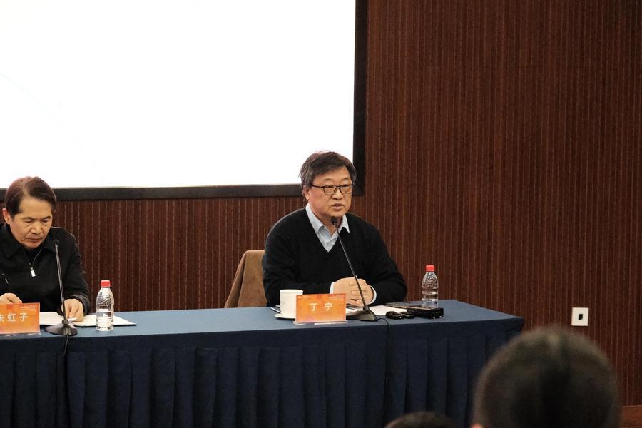 22日、第10回中国北京国際美術ビエンナーレの記者会見に出席した中国美術家協会理事の丁寧(てい・ねい)北京大学文科リベラルアーツ教授。(北京=新華社記者/李卓璠)