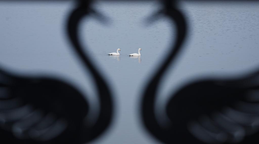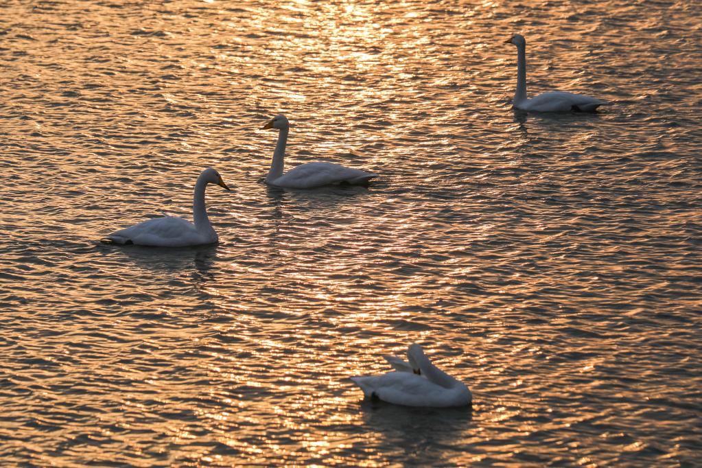 21日、河南省三門峡市の天鵝湖国家都市湿地公園で撮影したハクチョウ。(三門峡=新華社配信/徐宏星)