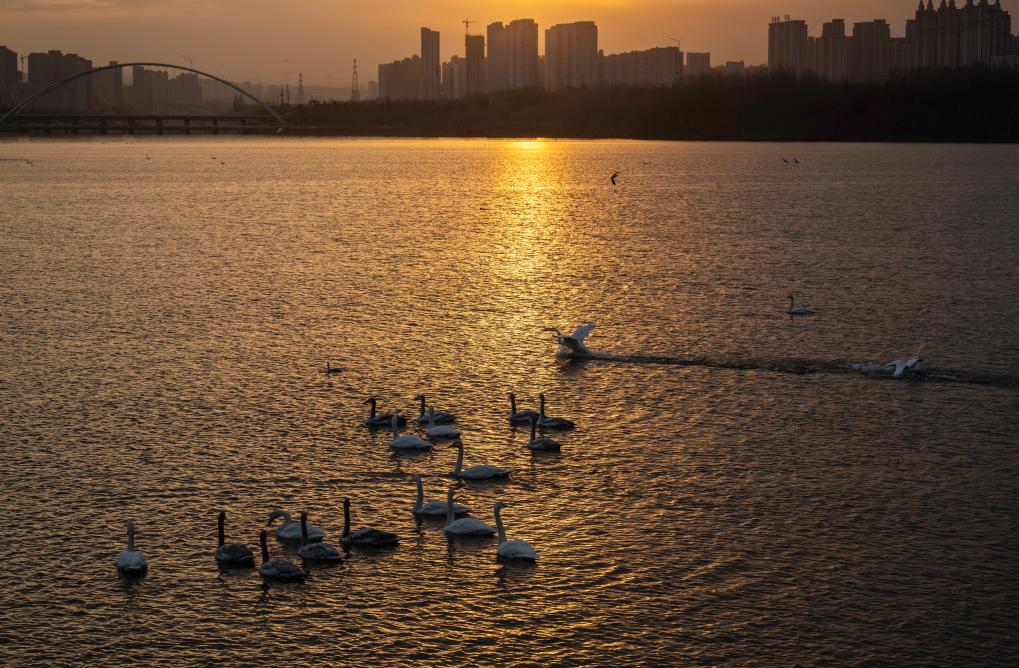【新華社三門峡12月22日】中国河南省三門峡市の黄河湿地にこのほど、多くのハクチョウが越冬のため飛来した。地元ではここ数年、黄河沿岸の湿地保護を絶えず強化しており、飛来数は年々増えている。黄河のほとりに広がる40万ムー(約267平方キロ)余りの湿地や浅瀬には現在、1万羽を超えるハクチョウが滞在している。