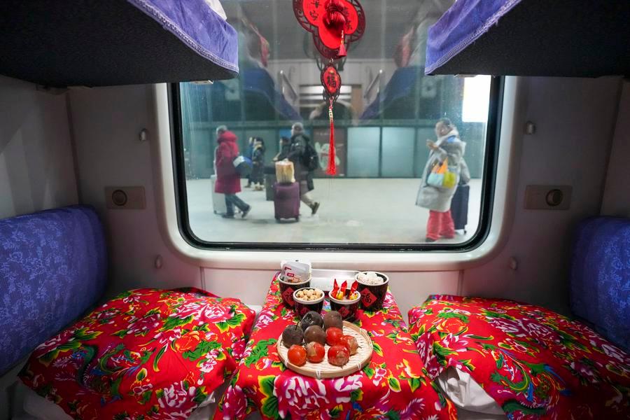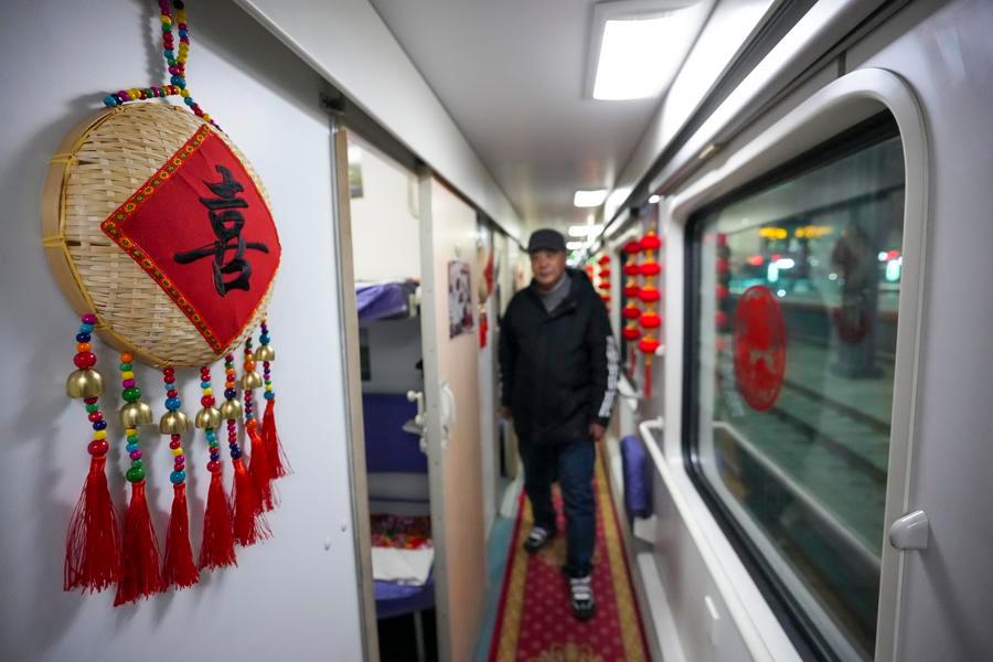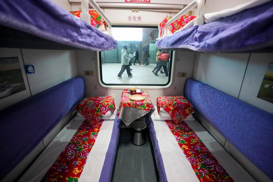 22日、東北民俗文化テーマ列車の寝台車。(ハルビン=新華社記者/王松)
