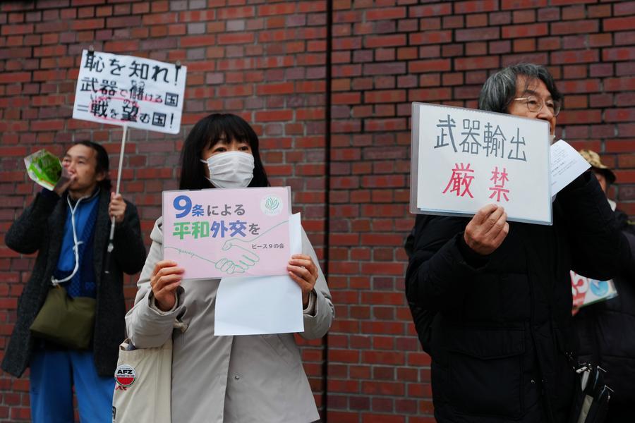 【新華社東京12月26日】東京の自民党本部前で25日午後、与党による武器輸出規制の大幅緩和の動きに反対する市民グループの抗議集会が開かれた。自民党と日本維新の会は、防衛装備移転三原則の運用指針を見直し、武器輸出の目的を「救難、輸送、警戒、監視、掃海」に限定してきた「5類型」を撤廃するとの方針を示している。