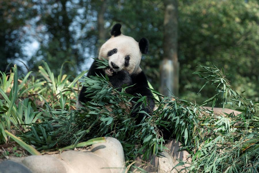【新華社成都12月27日】中国四川省雅安市にある中国ジャイアントパンダ保護研究センター雅安碧峰峡基地でこのほど、日本生まれのパンダ、シャンシャン(香香)が竹の葉を食べる様子が撮影された。