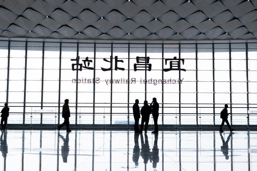 26日、湖北省の宜昌北駅で改札を通る乗客。(宜昌=新華社記者/伍志尊)