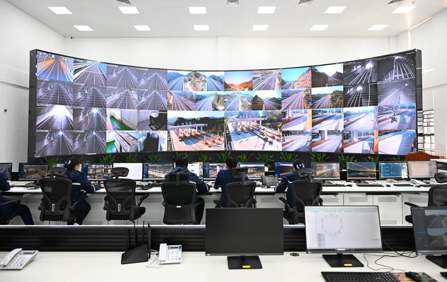 28日、陽信高速道路の圭崗管理センターの監視指令センター。(陽春=新華社記者/鄧華)