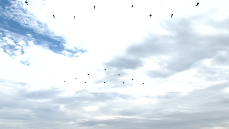 中国人民抗日戦争・世界反ファシズム戦争勝利80周年記念大会、分列式の幕を開ける空中護旗梯隊