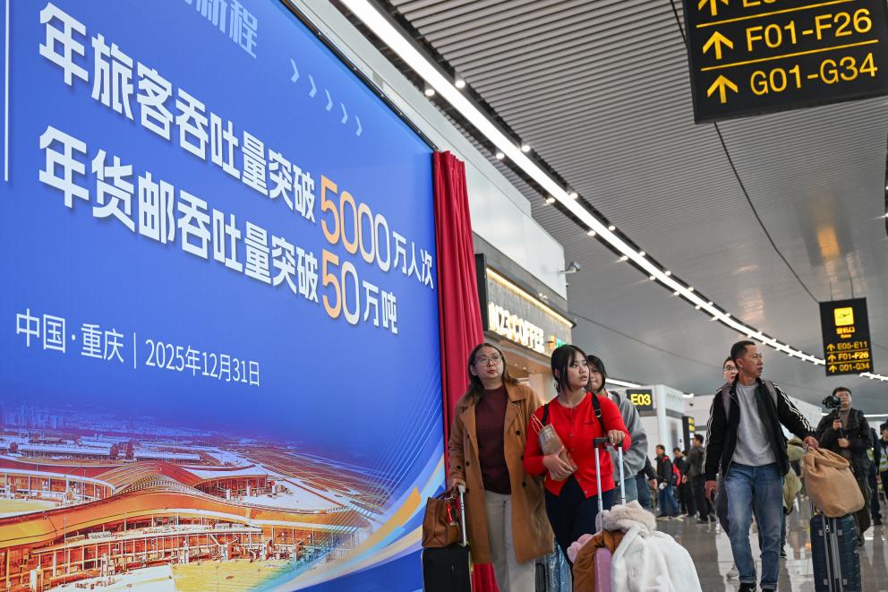 【新華社重慶1月2日】中国重慶市の江北国際空港は2025年、年間旅客数が初めて5千万人を超えた。郵便・貨物取扱量も50万トン以上となり過去最高を記録した。