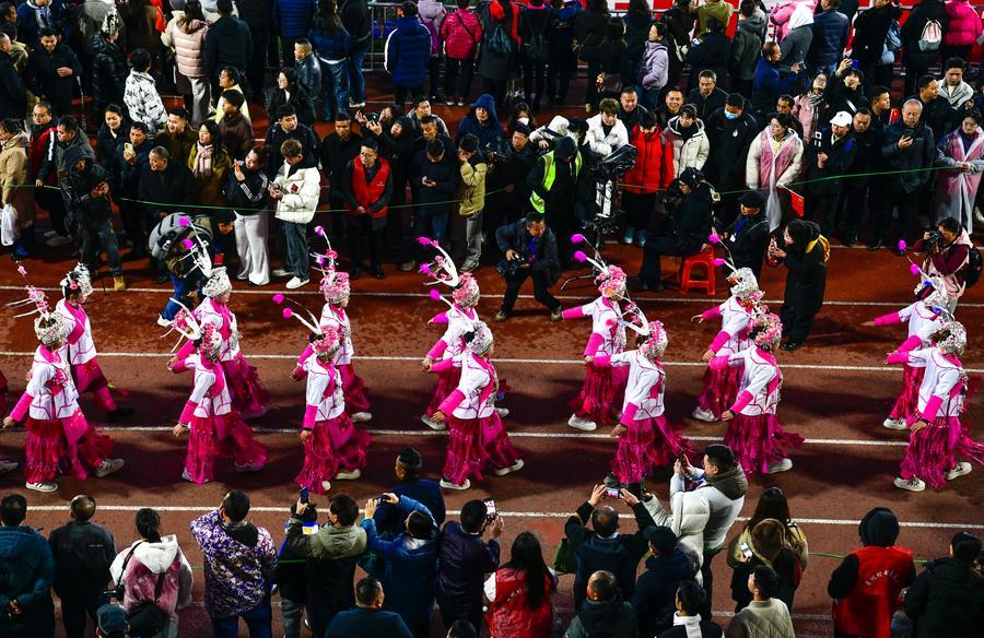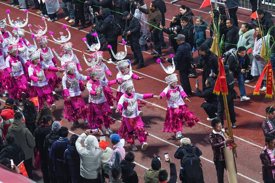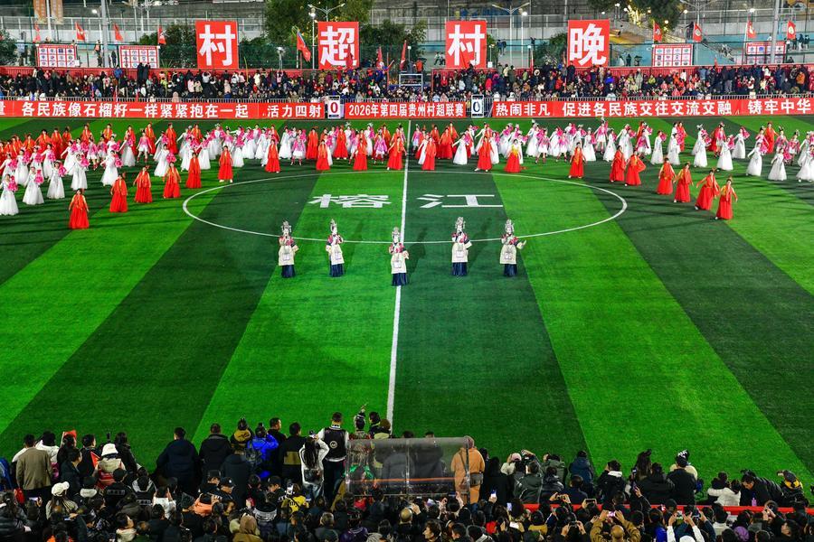 【新華社榕江1月3日】中国貴州省黔東南(けんとうなん)ミャオ族トン族自治州榕江県で2日、第4回貴州農村サッカースーパーリーグ「村超」が開幕し、開会式に併せてナイトイベントも開かれた。参加チームも第1回(2023年)の20チームから137チームへとさらに規模が拡大した。