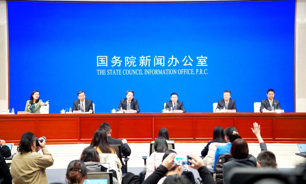 5日、国務院新聞弁公室が開いた長江経済ベルトの10年間の発展成果を紹介する記者会見。(北京=新華社記者/潘旭)