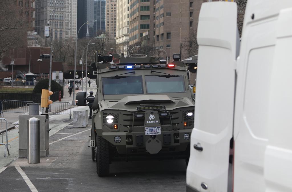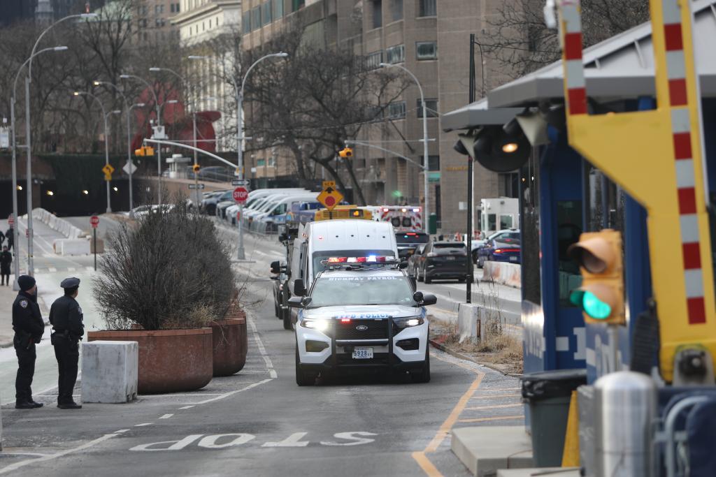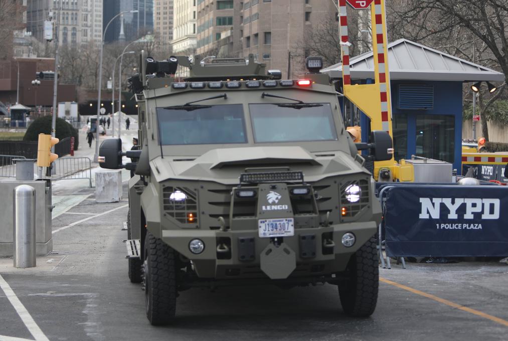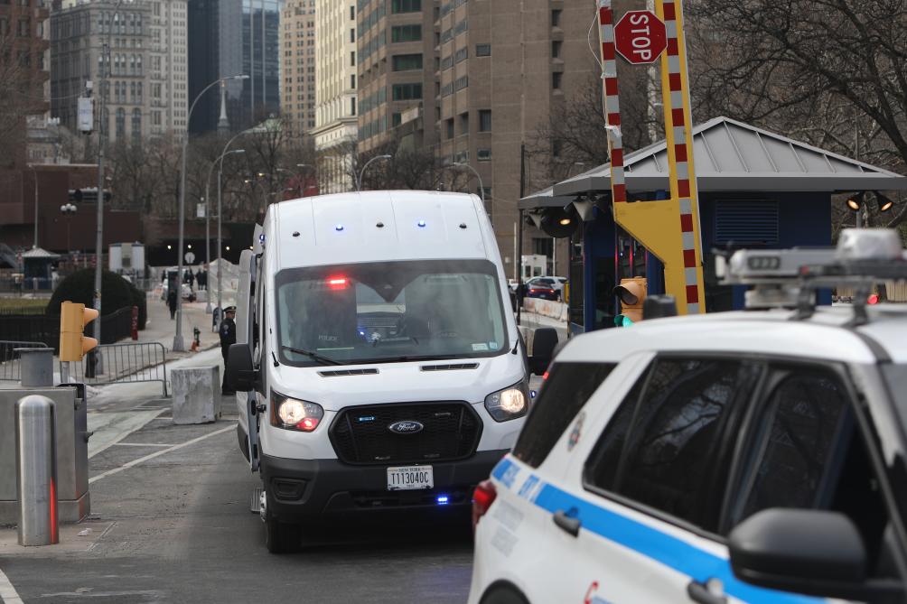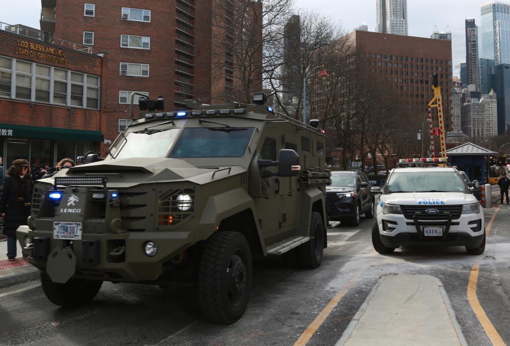 5日、米ニューヨーク南部地区連邦地方裁判所を離れるベネズエラのマドゥロ大統領を移送する車列。(ニューヨーク=新華社記者/張鳳国)